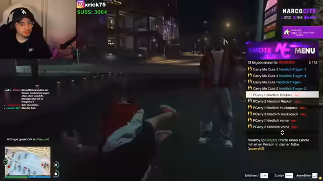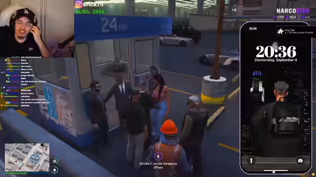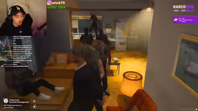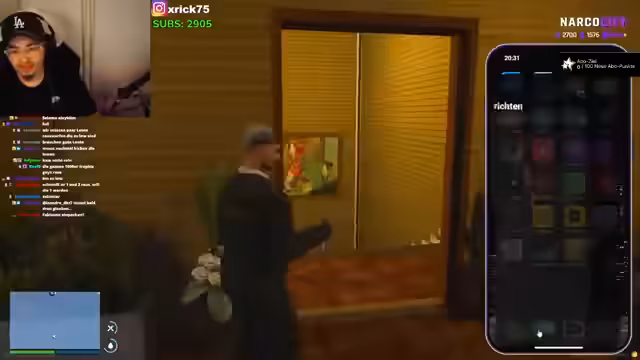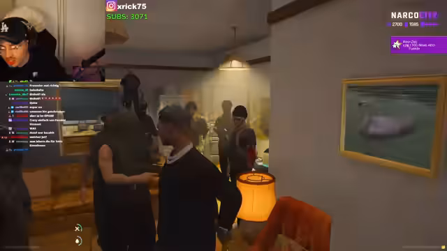 00:15:24Der Streamer kündigt verschiedene Events an, darunter eine Verlosung in einem Laufhaus, nennt Termine für eine "Watch-Party" und plant gemeinsame Aktivitäten wie einen Kinobesuch. Ein großer Teil des Streams ist jedoch von Rollenspiel (RP) geprägt, bei dem ein chaotisches Treffen in einer Skybar stattfindet. Dabei kommt es zu Spannungen, Streitereien und dem Aufdecken von vermeintlichen Lügen, was zu einer angespannten Atmosphäre führt.