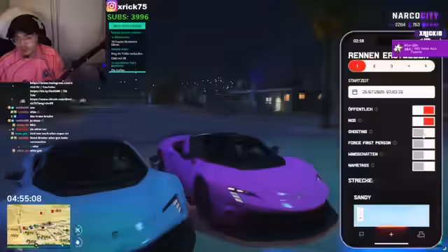 04:37:33Es läuft eine private Wette mit einem Konkurrenten namens Tammy. Der Streamer bietet an, bei einem Gewinn ein Date zu vereinbaren. Der Gegner kontert mit einer Gegenwette: 400 'Boxen', um bei einem Sieg eines Doppeldates beizutehmen. Der Streamer lehnt dies als Rufschädigung ab und schlägt stattdessen vor, dass der Gegner bei einem Sieg sein Anwesen putzen solle, was dieser wiederum ablehnt.