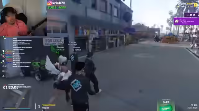 11:33:38Es kommt zu mehreren Konfrontationen mit anderen Spielern. Der Streamer verhaftet eine Person und konfrontiert sie mit Anschuldigungen, was zu einem verbalen Streit eskaliert. Die Situation wird durch die Verwendung beleidigender Sprache und aggressiver Handlungen weiter aufgewärmt, wobei der Streamer die Verhaftung als notwendig für die "Story" des Streams darstellt.