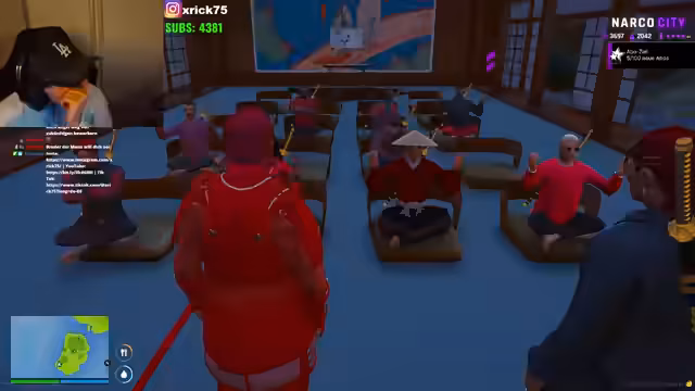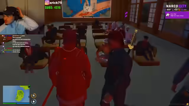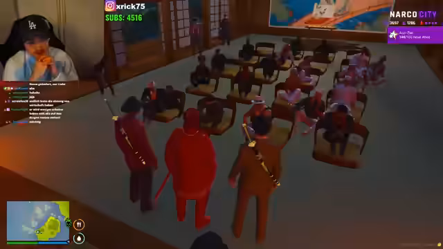 00:24:01Nach dem Wiederherstellen der Verbindung meldet sich die Fraktion Los Reyes, eine mexikanisch inspirierte Gruppe, im Stream. Sie stellen sich mit ihren Zielen vor, darunter der Aufbau eines eigenen Viertels im Norden der Stadt und der Schutz ihrer Leute vor Unterdrückung. Der Streamer begrüßt die friedliche Kontaktaufnahme, tauscht Kontaktinformationen aus und diskutiert mögliche künftige Auseinandersetzungen.