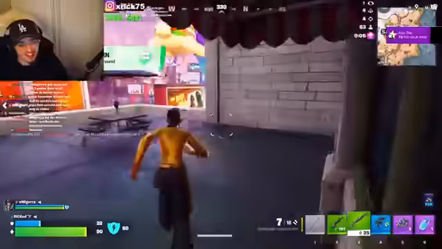 07:40:35Der Streamer spielt Fortnite mit einem anderen Spieler, genannt Juju oder Jodeci. Es kommt zu technischen Schwierigkeiten mit der Sprachqualität, was die Kommunikation erschwert. Während des Spiels spricht der Streamer den Spieler an und fragt nach seinem Alltag. Es geht hervor, dass der Spieler Informatik studiert und auch Musik macht. Die beiden unterhalten sich über Studienentscheidungen, die Herausforderungen des Streamings im Vergleich zu einem Studium und die persönliche Entwicklung.