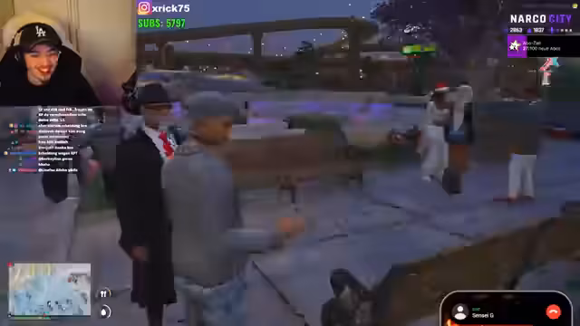 02:23:54Der Streamer und seine Gruppe planen offenbar eine kriminelle Aktion, einen Juwelenraub mit Motorrädern. Dabei werden Rollen und Details der geplanten Tat besprochen. Gleichzeitig gibt es eine kritische Situation, bei der ein Freund namens Paco in Staatsbank ist und befreit werden muss. Der Streamer erwähnt eine Langwaffe und eine drohende Verhaftung, was die Dringlichkeit der Situation erhöht und zeigt, dass sie tief in illegale Aktivitäten verstrickt sind.
