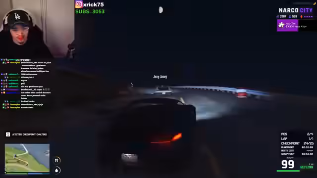 06:33:45Das Rennen um eine Million Dollar beginnt, doch die Autos fahren 'richtig kacke'. Es kommt zu Verwirrung über den Einsatzbetrag, wobei der Protagonist auf eine Million besteht, während andere von 500.000 sprechen. Die finanziellen Schwierigkeiten des Protagonisten werden deutlich, da er 'broke' ist und der Mafia sein ganzes Geld genommen hat. Ein neues Rennen wird mit einem anderen Auto, dem Schlagen GT, geplant. Die Stimmung ist ausgelassen, aber auch von den Geldsorgen des Protagonisten geprägt. Das Rennen verläuft chaotisch, und der Protagonist verliert aufgrund eines verpassten Checkpoints. Am Ende des Streams bedankt sich der Protagonist beim Chat für den Support und verabschiedet sich mit guten Wünschen für die Nacht.