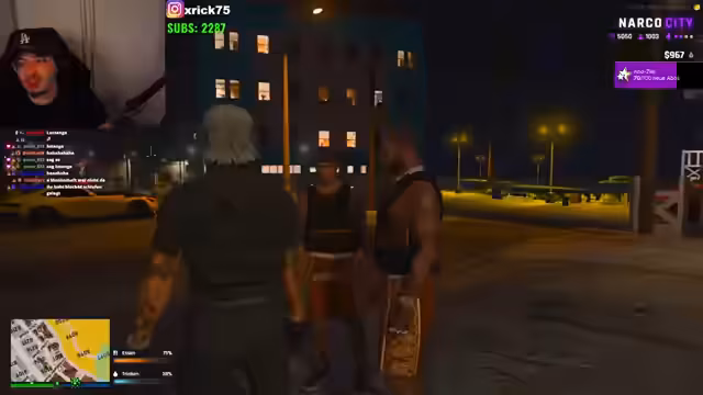 02:13:04Der Stream konzentriert sich nun auf die Vorbereitungen für einen großen Drogenverkauf. Es wird eine detaillierte Planung besprochen, welche Fraktion auf welcher Position agieren wird und wer mit welchem Fahrzeug ausrückt. Es kommt zu Missverständnissen und Spannungen, als plötzlich eine Polizeirazzia angekündigt wird. Die Situation wird als kritisch eingestuft, und die Frage lautet, ob die Aktion fortgesetzt oder abgebrochen werden soll, da die Anwesenheit von Polizei und gegnerischen Banden alles kompliziert.