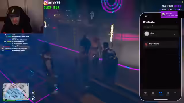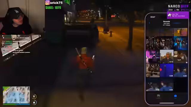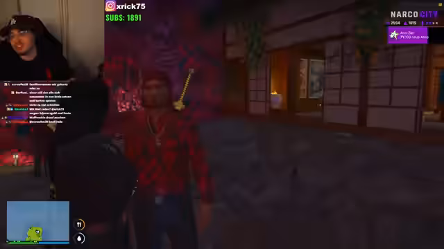 01:44:18Während des Streams ereignet sich ein Zwischenfall, bei dem ein Zuschauer den Streamer als Fanboy bezeichnet. Der Streamer reagiert darauf scharf und konfrontativ, indem er den Zuschauer als unangemessen ansieht und ihn zur Ruhe auffordert. Gleichzeitig wird eine Diskussion über den Besitz von Waffen und Drogen angestoßen, was die fortlaufende, kriminelle Atmosphäre des Streams unterstreicht. Der Ton wird zunehmend angespannt.