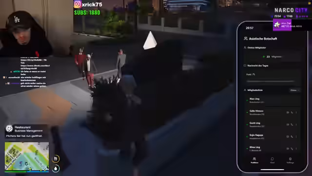 03:52:41Es kommt zu einem ernsten Streit mit Mitgliedern der Familie von Luciano. Der Streamer wirft ihnen respektloses Verhalten vor, als sie mit Balu über die Geldwäsche sprechen, was dazu führt, dass die abgesagt wird. Luciano wird kontaktiert, und man verhandelt über eine Entschuldigung und die Fortführung der Geschäfte. Der Ton ist unversöhnlich, und die Spannungen zwischen den Gruppen sind deutlich spürbar.