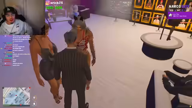 00:53:10Es finden zahlreiche Rollenspiel-(RP)-Szenen statt, darunter ein komplizierter Treffen mit Geschäftspartnern wie Ivan, wobei Respekt und Grenzen thematisiert werden. Eine RP-Szene mit Chat-Mitgliedern wie Shivo dreht sich um die Gründung eines "Horny Circle". Der Streamer interagiert auch mit diversen Charakteren und nutzt die Spielumgebung, um immersive Erlebnisse zu schaffen, oft mit humorvollen oder skurrilen Elementen.