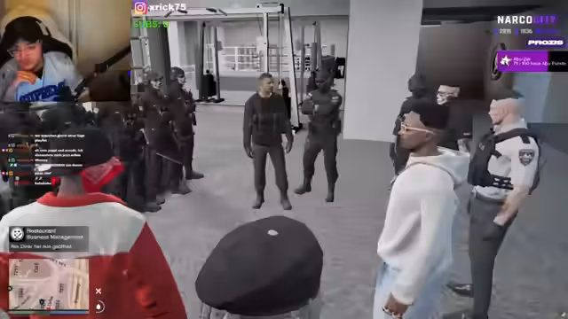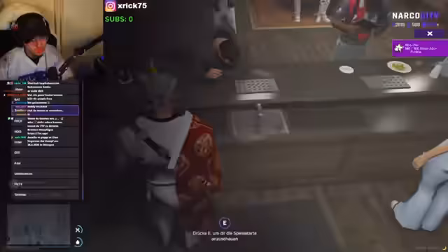 03:37:35Der Streamer befindet sich nun in einem Club und übernimmt die Rolle eines Anführers oder Zuhälters, die er 'Qualitätsmanagement' nennt. Er stellt eine Tänzerin namens Sella sehr aggressiv zur Rede und wirft ihr vor, Schulden bei ihm zu haben. In einer szenenhaften Konfrontation droht er ihr, sie zu erschießen, und zwingt sie und ihre 'Mädels', den Club sofort zu verlassen, angeblich um sie zu schützen. Er agiert hier als eine mächtige und gefürchtete Figur in der Spielwelt.