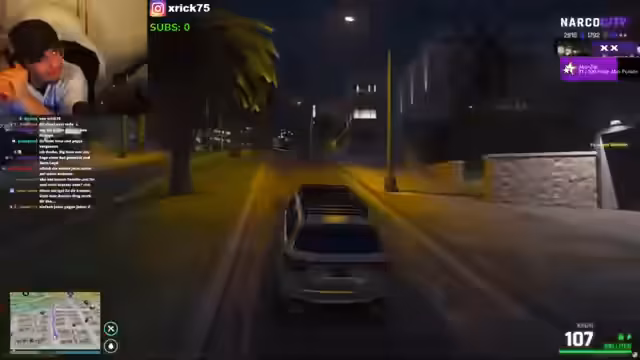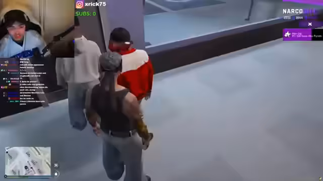 01:34:46Die Handlung wird actionreich. Der Streamer erzählt von einer Verfolgungsjagd und von einem Diebstahl seines Autos durch eine Person namens Saddle. Er versucht, den Täter aufzuspüren, und trifft auf eine Geiselnehmer-Situation, bei der er eine Frau als Geisel nimmt, um Sosa zu finden und zur Rede zu stellen. Es droht eskalierende Gewalt während der Konfrontation.
