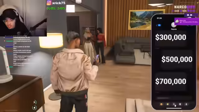06:08:51Der Streamer erhält eine dringende Nachricht von seinem Cousin, die ihn zu einem Anwesen bittet, wo ein Vorfall stattgefunden haben soll. Er trifft auf Santana und Diamond, die schildern, dass das Finanzamt ihnen große Summen Geld beschlagnahmt habe. Santana stellt die Bedingung, der Streamer müsse ihm eine Million Dollar annehmen, um eine Brüderschaft aufrechtzuerhalten. Es kommt zu einem Streit über die Annahme des Geldes und die Beziehung zwischen den Beteiligten.