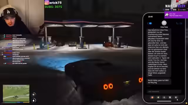 01:30:07Der Streamer sucht nach einem Latex-Outfit für einen besonderen Anlass. Er fragt verschiedene Charaktere nach Kontakten, die ihm dabei helfen könnten. Er versucht, Hakan zu erreichen, der angeblich Latex-Outfits anbietet, aber dieser ist nicht erreichbar. Schließlich kontaktiert er Etienne, der ebenfalls als "warm" beschrieben wird und ein Latex-Outfit besitzen soll. Es kommt zu einem Treffen mit Etienne bei Noctis, wo der Streamer humorvoll fragt, ob er sich von Hexen ficken lässt. Die Unterhaltung ist gespickt mit sexuellen Anspielungen und humorvollen Bemerkungen über die Vorlieben der Charaktere.