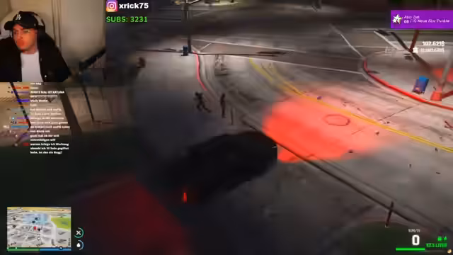 03:48:30Der Stream beginnt mit einer eskalierenden aggressiven Auseinandersetzung, die von verbalen Beleidigungen und Bedrohungen geprägt ist. Es droht die Benutzung von Waffen und explizite Drohungen, wie 'ich schieß dir gleich ins Bein', werden ausgesprochen. Die Situation spitzt sich zu, als eine Figur sich auf der Straße des anderen befindet und die andere Person mit einer Pistole bedroht und deren Verbleib auf der Straße als 'unglaublich' bezeichnet, was die angespannte Atmosphäre unterstreicht.