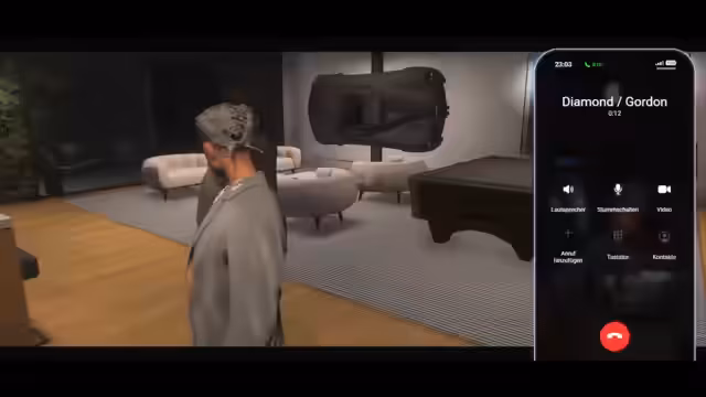 02:51:40Der Streamer bereitet eine Mission mit Diamond vor. Es geht um das Einholen eines Juwels und ein Treffen mit Jigsaw. Die Kommunikation erfolgt über Textnachrichten, da ein Anruf nicht möglich ist. Diamond berichtet, dass er im Casino nicht hereingelassen wurde, und verlangt, dass der Streamer ihn 'Daddy' nennt, um Zugang zu erhalten, was jedoch abgelehnt wird.