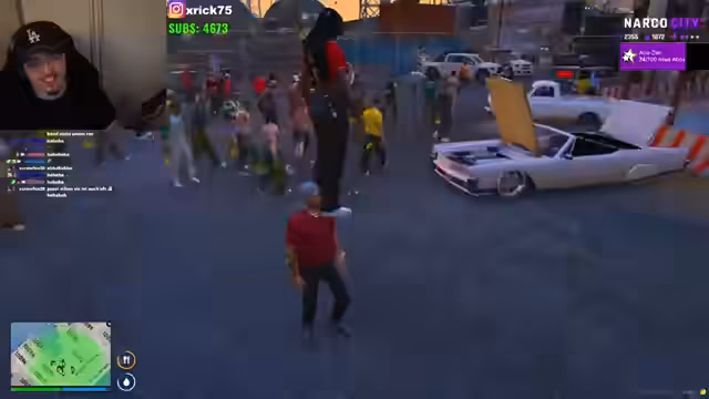 01:53:44Das Event beginnt offiziell. Der Streamer begrüßt alle Anwesenden und erklärt die Regeln für die bevorstehenden 2v2-Kämpfe. Jeder Fight startet mit einem Einsatz von 25k pro Team. Es wird klargestellt, dass das Schießen mit Messern und Pistolen vor sowie während des Kampfes verboten ist. Der Streamer ruft die Teams auf, sich für ihre Kämpfe bereitzumachen, und das erste Team wird zur Arena gerufen, um den ersten Fight zu bestreiten.
