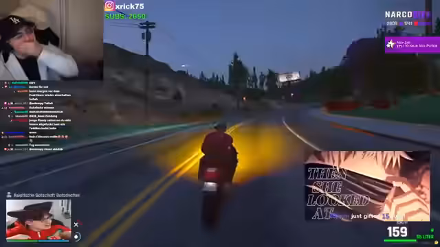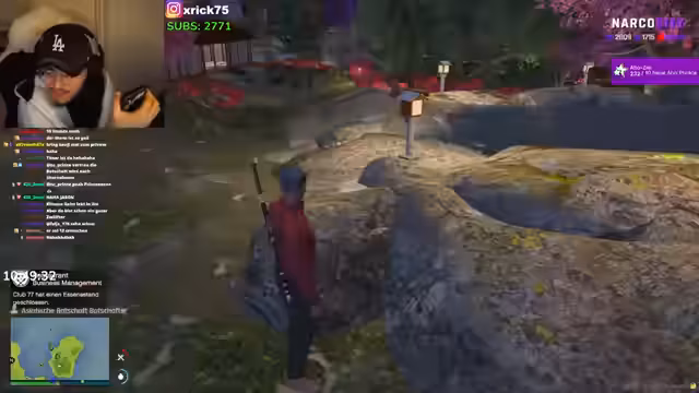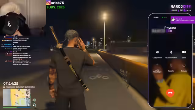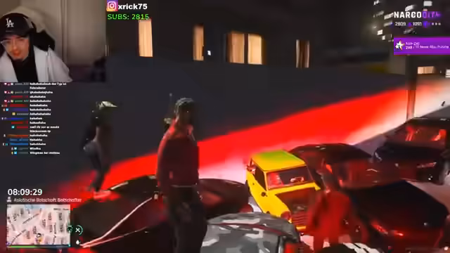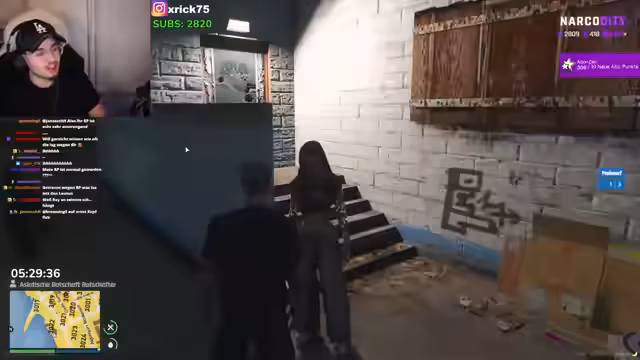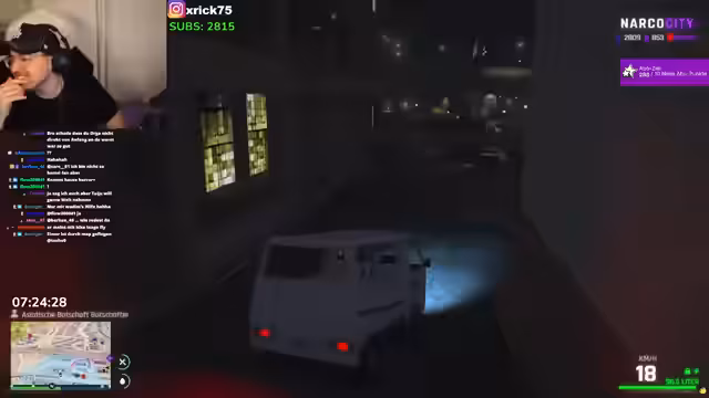 07:35:51Der Stream beginnt mit einer andauernden Konfrontation zwischen den Charakteren, bei der es um unerwartete Besuche, Prostitution und unklare Absichten geht. Im weiteren Verlauf wechselt der Fokus zur Spielfigur, die sich darauf vorbereitet, eine Mission in der Stadt NarcoCity zu starten. Sie erkundet ihre Umgebung, sucht nach Ausrüstung und interagiert mit anderen Charakteren, die in einen bevorstehenden Überfall verwickelt sind. Die Vorbereitung ist geprägt von einem chaotischen Suchen nach Werkzeugen und der Planung des nächsten Zieles.