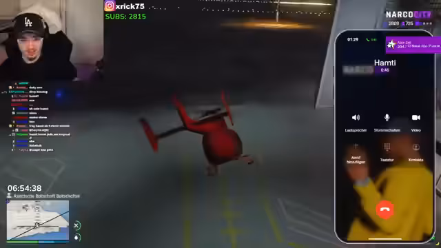 05:10:26Die geplante Heli-Challenge wird zum Desaster. Die Person stürzt sich aus dem Helikopter, aber der Streamer fängt sie nicht. Er beschimpft sie als 'Arsch' und fairplay-los. Trotzdem bittet die Person um ein weiteres Treffen. Gleichzeitig wird deutlich, dass eine weitere Person, Rayuna, in das Geschehen involviert ist und den Streamer um ein Treffen bittet. Der Streamer ist misstrauisch und geht in Dauerfunk, um Hilfe bei einem potenziellen Angriff zu holen.