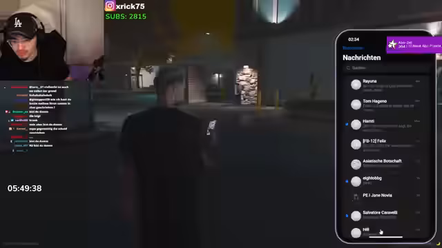 00:48:31Der Fokus verschiebt sich auf illegale Finanztransaktionen und Geldwäsche. Der Streamer plant, 16 Millionen zu waschen, und baut ein Netzwerk auf. Nach einem Konflikt wird eine Partnerschaft vorgeschlagen: das Erträge aus der Geldwäsche sollen im Verhältnis 50:50 aufgeteilt werden. Die Verhandlungen finden im Rahmen eines Kriegsvertrags statt, um den Streit beizulegen.
