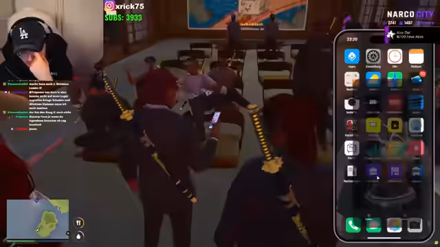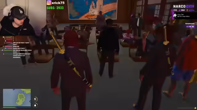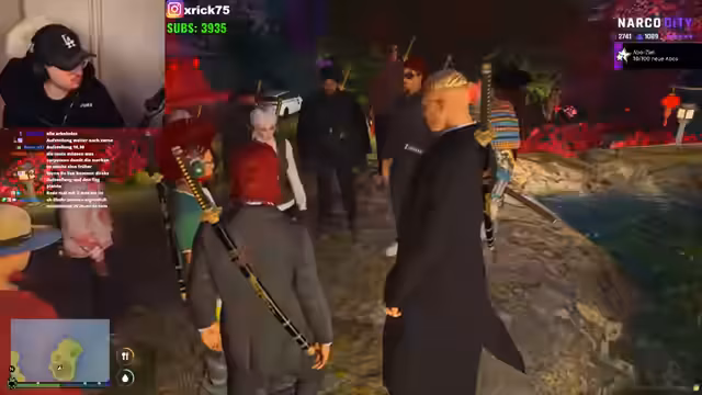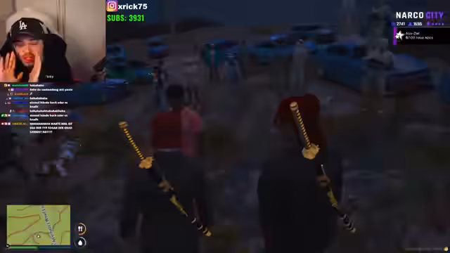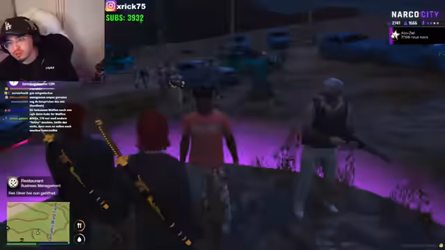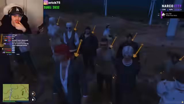00:42:06Es kommt zu einer Auseinandersetzung mit einer rivalisierenden Gang, die orangefarbene Kopfbedeckungen trägt. Nachdem diese Gruppe ohne Ankündigung Territorien betrat und die Gruppe ignorierte, zogen beide Seiten Waffen. Der Streamer versucht, durch direkte Kommunikation die Situation zu deeskalieren, während er gleichzeitig die territorialen Rechte verteidigt. Die Diskussion offenbart Meinungsverschiedenheiten über Besitzansprüche und die Einhaltung von Gang-Codes bezüglich Respekt und Abmachungen.