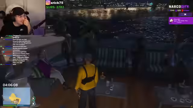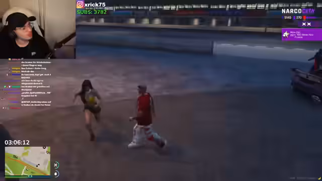 04:12:35Zu Beginn des Streams brodelt es unter den Charakteren. Es tobt ein Streit um die verlobte Frau, die mit einem anderen Mann, Gio Montana, in Verbindung gebracht wird. Beschuldigungen und Beleidigungen fliegen hin und her, während der Protagonist mit Rachedrohungen reagiert und droht, seine Frau zu töten. Der Konflikt eskaliert, als er den Standort des Konkurrenten verlangt, um das Problem gewaltsam zu klären, und sich gleichzeitig um angeblich ungelöste Dramen kümmern will. Parallel dazu gibt es Diskussionen über Nasenspray und eine intime Begegnung mit einer Frau namens Shyla.
