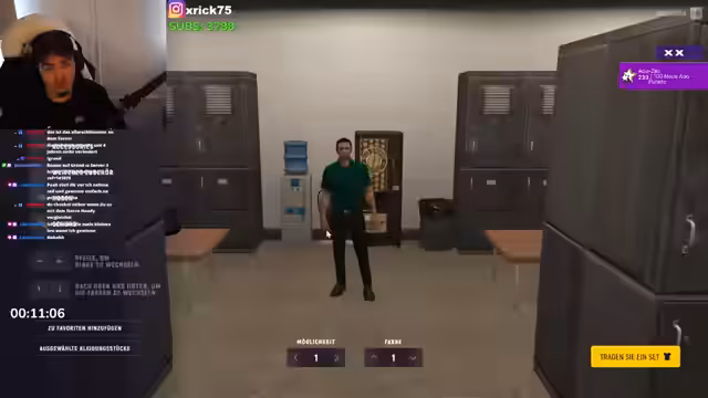 00:29:09Während des Streams wird eine Kooperation mit einer Firma namens Grant angekündigt, die eine PlayStation 5 Slim im Wert von 50 Euro verlost. Um teilzunehmen, müssen die Zuschauer einen Discord-Server beitreten und eine Software installieren, um ihre Spiel-ID zu verifizieren. Der Streamer betont, dass dies eine offizielle Partnerschaft sei und die Verifizierung durch Grant selbst erfolge. Außerdem tauchen neue Charaktere wie Exo-Escorts im Tropical Club auf, was zu interaktiven Szenen führt.