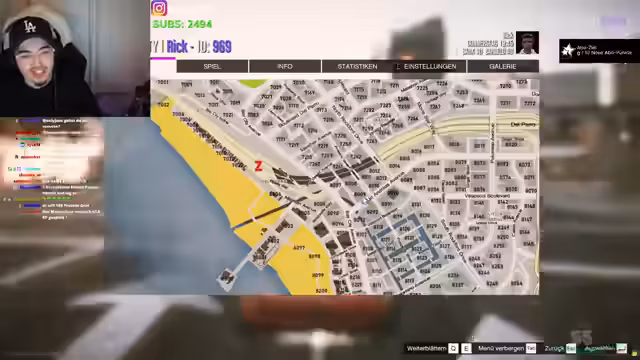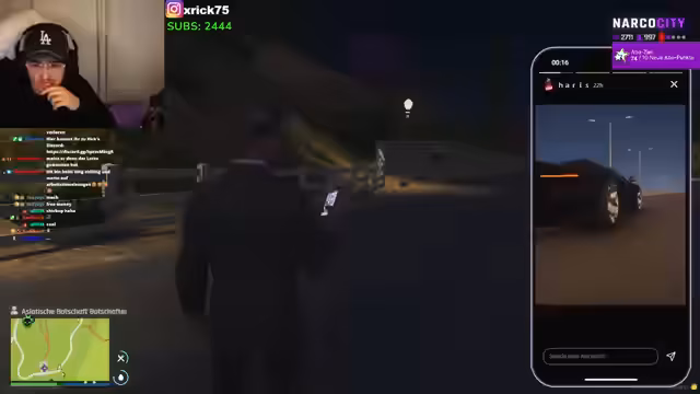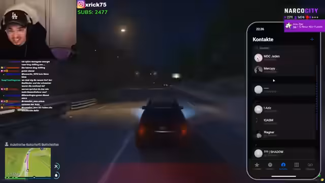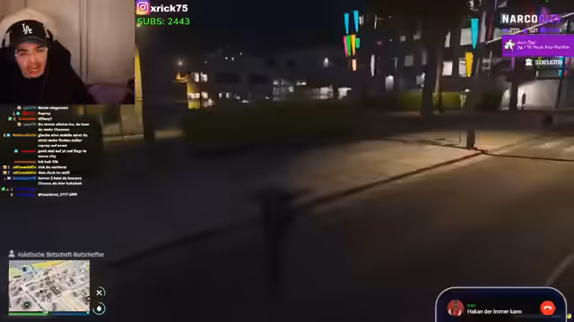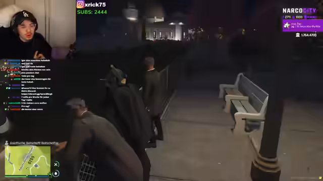 00:00:00Der Stream startet mit dem Lied 'Shine bright like a diamond'. Es werden gängige Server-Interaktionen angesprochen, wie den Songwunsch für den nächsten Titel. Die Welt von NarcoCity etabliert sich durch die Nennung von Gangs wie den Hustlers und Ballers, welche eine zentrale Rolle spielen. Der Streamer erkundet die Stadt, zeigt verschiedene Orte wie die Helm und Schwarz Anwaltskanzlei und den Piggy Autofriedhof. Dabei werden Charaktere vorgestellt und das allgemeine Gameplay von Rollenspielen auf dem Server thematisiert.
