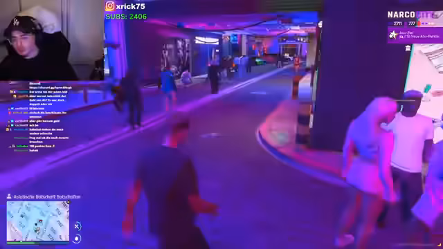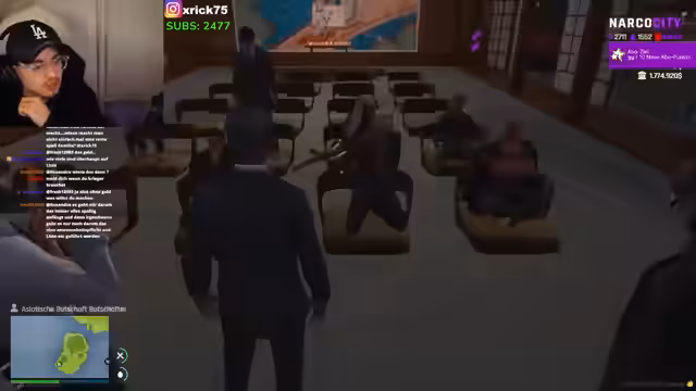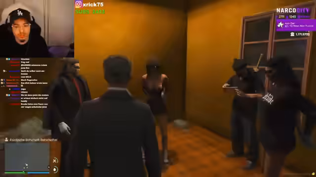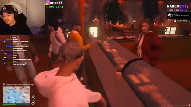 01:35:59Der Streamer besucht einen exklusiven VIP-Club, um seine Macht und seinen Status zu demonstrieren. Er versucht, mit seinem Gefolge und der 'Bella Donna' eine Allianz mit einer anderen Mafia-Familie einzugehen. Dabei wird er von einem sturen Security-Mann aufgehalten, was zu einem Machtkampf um den Zugang wird. Die Situation erfordert die Einschaltung des Managements und führt zu einer Konfrontation, bei der der Streamer seine VIP-Status nutzen muss, um Respekt und Zugang zu erzwingen.