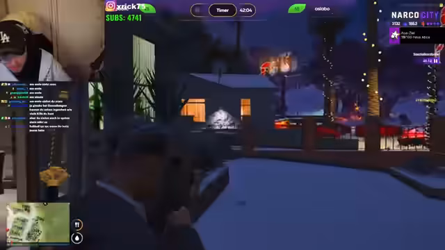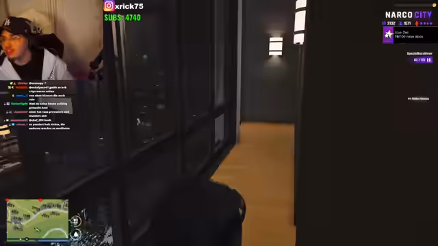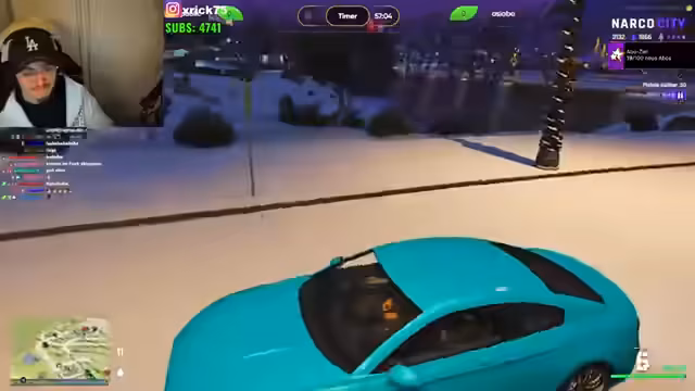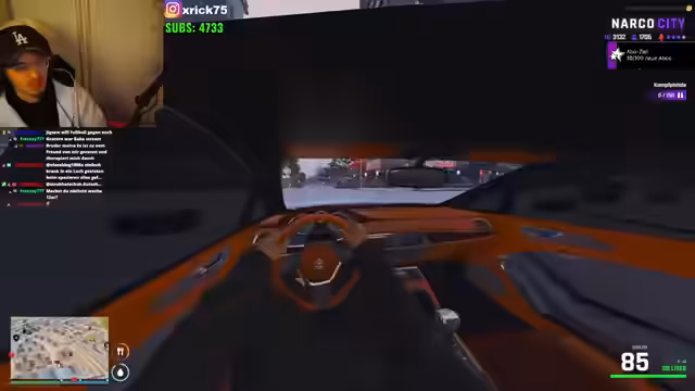 00:25:00Der Fokus liegt auf Fahrzeugen in NarcoCity: Der Lexus LFA wird als teuerstes Auto (700.000–1,6 Millionen Euro) diskutiert, während der RS6 als Tuning-Neuheit vorgestellt wird. Es folgt eine Unterhaltung mit Lingling über Angelsteine-Kontrollen und ein Minecraft-Projekt mit anderen Narco-Streamern. Anschließend wird die CK-Bar erkundet, wo Party-Stimmung herrscht, und der Streamer feiert seinen Geburtstag (4. des Monats). Kritik wird an Catfish-Verhalten im Chat geübt, während gleichzeitig die Attraktivität des Bar-Bereichs gelobt wird.