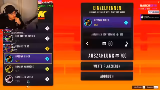 00:50:06Planung für einen Straßen- oder Boxkampf um drei Millionen Dollar. Streamer diskutiert mit anderen Spielern über Details des Kampfes und Preisgelder. Es kommt zu Meinungsverschiedenheiten über den Kampfmodus. Gleichzeitig finden weitere Casino-Aktivitäten statt, mit Wetten auf verschiedene Spiele und Diskussionen über Geldverluste. Streamer versucht, seine Verluste wettzumachen und diskutiert mögliche Sponsoren für seine Rennen.