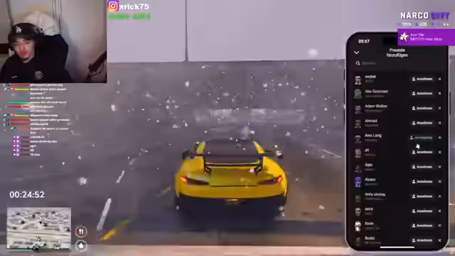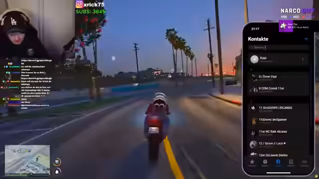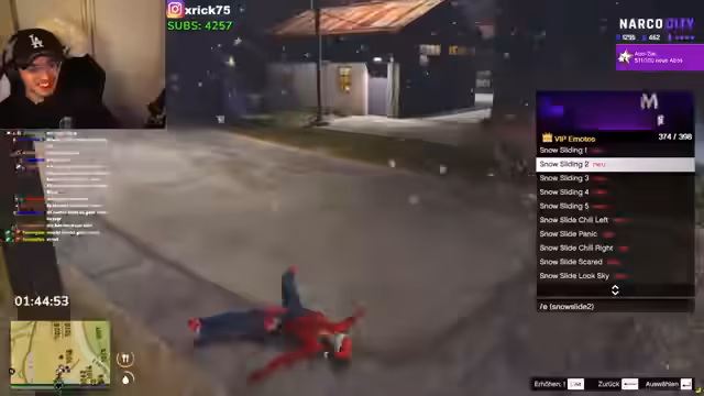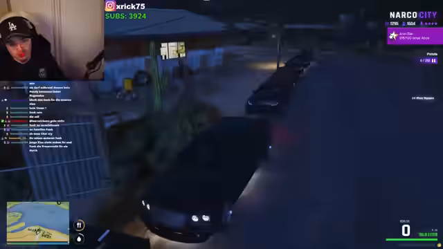 09:43:19Nach einem gescheiterten Fluchtversuch, bei dem der Protagonist 250 km in seine Tasche stecken will, wird ein Auto erbeutet. Es wird humorvoll angemerkt, dass das Fahrzeug, welches der Vorbesitzer unter Wert verkaufen musste, nun pink lackiert werden soll. Die beste Adresse für Fahrzeugtuning sei natürlich Xeon Motors. Währenddessen wird über persönliche Umstände gesprochen, darunter ein drohender Auszug und die Möglichkeit, bei Elena unterzukommen. Es gibt Verwirrung um den Besitzer des Autos, da das Kennzeichen als unbekannt angezeigt wird, was zu Spekulationen im Chat führt. Es wird entschieden, dass der ursprüngliche Besitzer das Auto an einem unauffälligen Ort übergeben soll, um eine Entführung zu vermeiden. Die Idee, das Auto pink zu lackieren und einen kleinen Spoiler anzubringen, wird weitergesponnen, wobei der Begriff "Sadumaso" fällt, der für Heiterkeit sorgt.