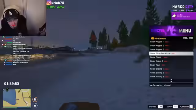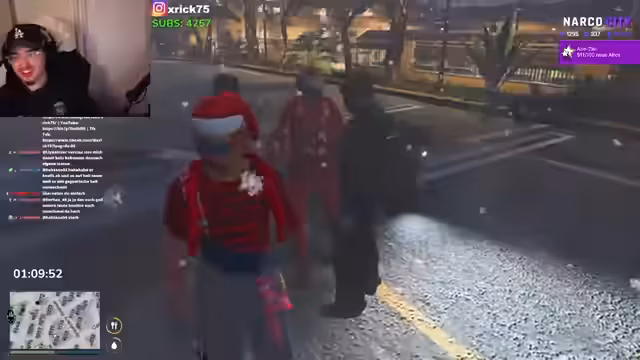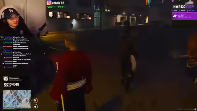 00:12:52Im Rollenspiel wird eine Szene mit einem Charakter namens Chaoling inszeniert, der von unbekannten Personen entführt wird. Die Entführer versprechen Chaoling Sicherheit, obwohl sie gerade ihre eigene Tochter verloren haben, was Chaoling einen höheren Stellenwert in ihrem Leben einräumt. Chaoling wird gefragt, wovor er wegläuft, scheint aber eingeschüchtert zu sein und schweigt. Die Entführer versuchen, ihn mit einem Teddybär oder Baklava zu beruhigen. Es wird scherzhaft vorgeschlagen, Chaoling als Geisel für 200 Dollar freizukaufen. Später im Stream wird das Outfit des Streamers bewertet, wobei die Zuschauer es als Winter-Outfit beurteilen. Es gibt weitere Diskussionen über den Standort von Musti und die Schwierigkeiten, im Rollenspiel den Überblick zu behalten, da der Streamer lange kein RP gespielt hat. Ein Soldat namens Musti erzählt von seinen Einsätzen und Patrouillen an der Grenze, was zu einer Diskussion über Schusswechsel und Verdienstmöglichkeiten führt.
