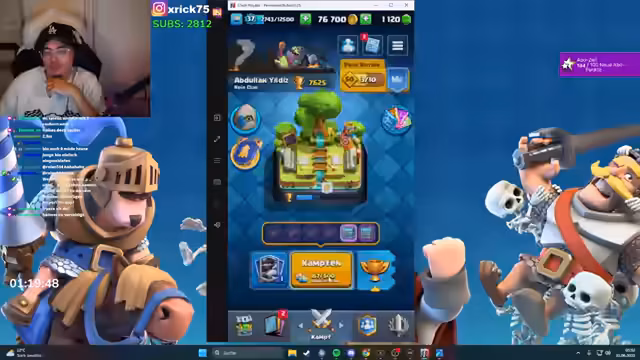 10:23:32Der Streamer wechselt später die Perspektive und beschäftigt sich intensiver mit den Clan-Aktivitäten. Er organisiert PvP-Kämpfe gegen andere Clan-Mitglieder und fordert Herausforderer auf. Dabei diskutiert er auch über die Stärken und Schwächen verschiedener Decks. Der Fokus liegt auf den Kämpfen selbst, wobei der Streamer sowohl seine Siege als auch Niederlagen kommentiert. Er äußert Frustration über manche Gegner, die er als zu stark beschreibt, und denkt darüber nach, einen neuen Clan zu gründen, um die Spieler besser auswählen zu können.