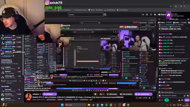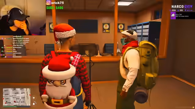 04:00:25Der Streamer schlüpft als Weihnachtsmann in eine interaktive Rolle und verteilt virtuelle Geschenke. Dabei kommt es zu Auseinandersetzungen mit als 'blöde Wichser' bezeichneten Personen, die den Weihnachtsmann provozieren. Später folgt ein Russisch Roulette-Spiel mit einer Requisiten-Revolver, das aufgrund unklarer Regeln zu Verwirrung führt.