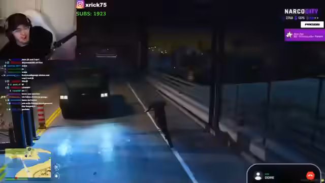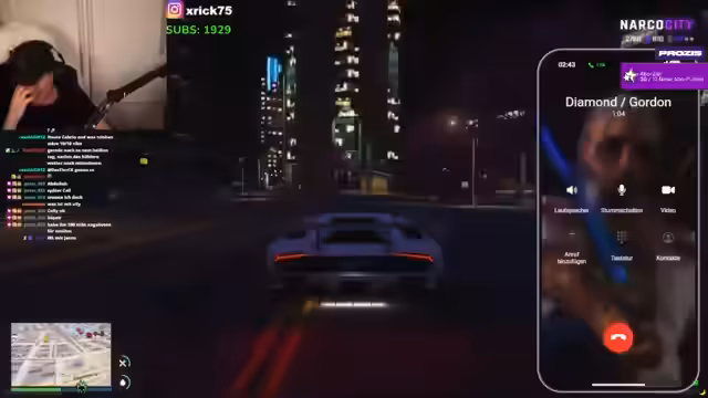 00:38:18Die Dynamik wechselt zu einem kriminellen Szenario. Der Streamer verteilt illegaler Drogen wie 'Fentanyl' und 'Ecstasy' an seine 'Leute'. Die Polizei erscheint, eine Durchsuchung droht, und es kommt zu einer chaotischen Flucht. Währenddessen wird eine angebliche Affäre mit 'JB' und eine Affäre mit 'Ellie' thematisiert, die zu Streitigkeiten und Spannungen innerhalb der Gruppe führt.