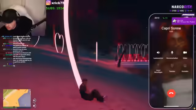 00:14:21Ein interner Konflikt eskaliert zwischen den Charakteren 'MJ' und 'Capri'. Vorwürfe der Respektlosheit werden ausgetauscht, was in einer tätlichen Auseinandersetzung endet, bei der MJ mit einer 'Baseballkeule' niedergeschlagen wird. Es gibt Drohungen, und der Streamer berichtet, MJ sei 'gestern operiert worden, weil du geschossen hast' und wäre beinahe gestorben. Die Situation ist stark angespannt und bleibt ungeklärt.