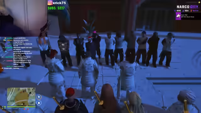 04:00:04Der Streamer interagiert mit einer Vielzahl von Figuren, die oft klischeehafte und humorvolle Rollen einnehmen. Beispielsweise gibt es mehrere 'Mami'-Figuren, die als Autoritäten oder Bezugspunkte dienen. Der Umgang ist stark von provokativen und unterschwellig sexuellen Anspielungen geprägt, die in den Rollenspiel-Szenen wiederkehren. Der Fokus liegt auf der Unterhaltung und der Schaffung einer lebendigen, chaotischen Umgebung.