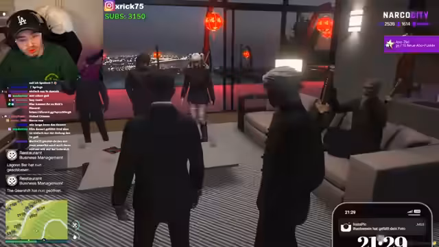 03:32:31Es kommt zu einer Auseinandersetzung mit dem Boss des Restaurants, der angeblich rassistische Äußerungen gemacht hat. Dem Streamer wird vorgeworfen, dass sich andere Gäste beschwert hätten, weil die Gruppe "stinken" würde. Der Streamer weist die Vorwürfe zurück und betont, dass er und seine Freunde hart für ihr Geld arbeiten. Es wird eine Diskussion über die Kleidung und das Auftreten der Gruppe geführt. Der Streamer betont, dass sie eine Botschaft repräsentieren und sich entsprechend kleiden sollten. Es wird überlegt, wie man Rising Sun einen Besuch abstatten kann, um einen "chillerigen asiatischen" Eindruck zu machen. Es wird der Plan gefasst, sich als Tuning-Interessierte auszugeben, um in das Anwesen von Rising Sun zu gelangen. Caravelli schenkt der Gruppe eine Sporttasche, die als "Meinungsverstärker für schlechte Zeiten" bezeichnet wird. Es wird überlegt, wie man die Tasche als Bombe einsetzen kann. Die Gruppe stellt sich Caravelli als "asiatische Botschafter" vor. Es wird der Plan gefasst, in das Anwesen von Rising Sun einzuschleichen und dort eine Bombe zu platzieren. Es wird überlegt, wer als Ninja in das Anwesen eindringen soll. Es wird beschlossen, vorher zum Lager zu fahren, um Westen zu holen.