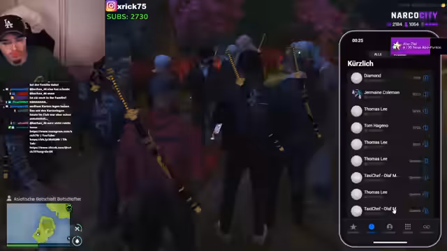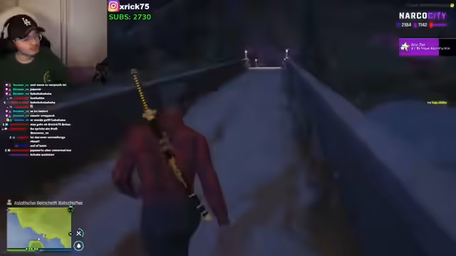 01:34:36Nach den turbulenten Geschäftsabschlüssen und Verlusten konzentriert sich der Streamer auf tägliche Aufgaben und zukünftige Pläne. Er beschreibt die geografische Umgebung, in der sie sich befinden, und erwähnt japanische Prostituierte in einem Park in Shinjuku. Die Hauptaufgabe besteht nun darin, das Konzept für ihre neuen Waffengeschäfte mit Santana finalisieren. Sie suchen zudem nach jemandem, der aktiv die "Langhappenruppe" betreibt, während eine Partnerschaft mit "Olga" als gescheitert gilt.