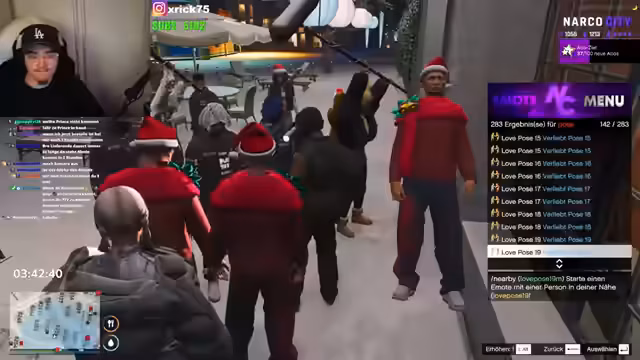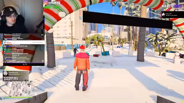 03:55:32Der Streamer startet eine Spendenaktion mit dem Ziel, 100 Millionen zu sammeln, um an Weihnachten Geschenke für 'artigste Kinder' zu verteilen. Er erwähnt, das Geld liege auf seinem Schweizer Bankkonto. Ein Gesprächspartner wünscht sich materiell nichts, sondern eine 'Asian-Baddy' – eine vietnamesische Partnerin –, die der Streamer verspricht zu organisieren. Die Spendenaktion wird als Event beworben, bei dem der Streamer selbst als Empfänger von Geschenken genannt wird, und es folgt eine Diskussion über die Verteilung der Mittel.