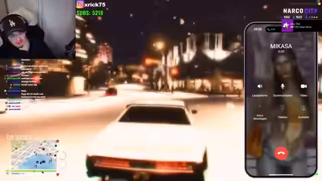 01:09:32Während eines Verfolgungsrennens schießt der Streamer auf ein entwendetes Auto und überfährt dabei einen Abschleppwagen-Bediensteten. Polizei rückt ein, beschuldigt ihn des Diebstahls, der Körperverletzung und des Schusswaffeneinsatzes. Der Streamer verteidigt sich mit Notwehr und Fluchtinstinkt, wird aber trotzdem festgenommen. Beamte beschlagnahmen seine Waffe und Kleidung als Beweismittel.