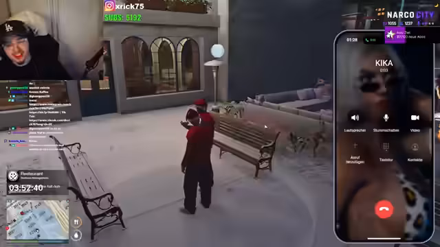 02:44:54In einer angespannten Szene diskutiert der Streamer mit Natascha, die im Bubble Café arbeitet. Sie streiten über ihre Situation: Natascha erwähnt, sie habe seit zwei Tagen keine Kleidung und kein Geld, weshalb sie dort arbeitet. Der Streamer kritisiert ihr bauchfreies Winteroutfit und bietet an, ihr Kleidung oder Geld zu schicken, doch sie lehnt ab und betont, sie habe kein Handy. Natascha erklärt, sie habe nur aus Lebensgefahr zugestimmt, als eine Waffe im Spiel war, und bezeichnet sich als veränderte Frau, die keine Beziehungen mehr möchte. Der Streamer wirft ihr vor, eine 'dumme Schlampe' zu sein, und es folgt eine hitzige Auseinandersetzung mit Beleidigungen auf beiden Seiten.