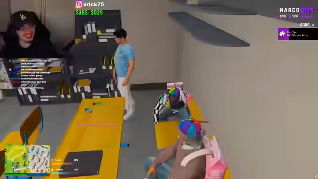 02:53:58Nach dem Gaming-Fiasko geht die Gruppe zurück in den Club. Dort werden sie von dem zuvor erwähnten Problem mit Lucy konfrontiert, das zu einem heftigen Streit führt. Der Streamer versucht die Situation zu beruhigen, was ihm jedoch nur teilweise gelingt. Aus der Not heraus beschließt die Gruppe, die Zeit mit einem unkonventionellen Unterrichtsbesuch an einer virtuellen Highschool zu verbringen, was als humorvolle Ablenkung und absurdes Ereignis dargestellt wird.