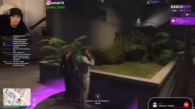 03:21:49Der Streamer plant einen Überfall auf die 'Rising Sun'-Familie, um eine Frau namens Bonnie aus ihrer Familie zu 'befreien' und deren Werkstatt zu übernehmen. Er sucht nach Verbündeten und Waffen, da sein Team schlecht ausgerüstet ist. Es wird ein Deal mit einem Mr. Diamond ausgehandelt, der für 500.000 Geld Unterstützung leisten soll, während der Streamer die personelle und strategische Führung übernimmt.