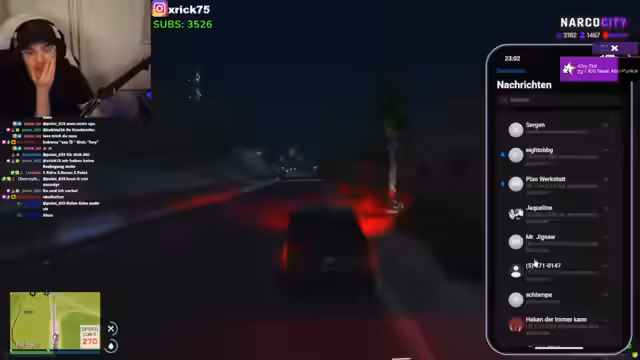 01:43:30Der Streamer wendet sich persönlichen Themen zu und gibt eine Rangliste seiner 'schlimmsten' Ex-Freundinnen, was zu humorvollen und neckischen Interaktionen im Chat führt. Persönliche Geschichten und Anekdoten werden geteilt, was eine kontrastierende, fast private Atmosphäre zur ansonsten actiongeladenen kriminellen Handlung des Streams schafft.
