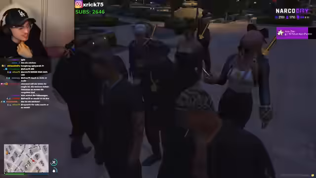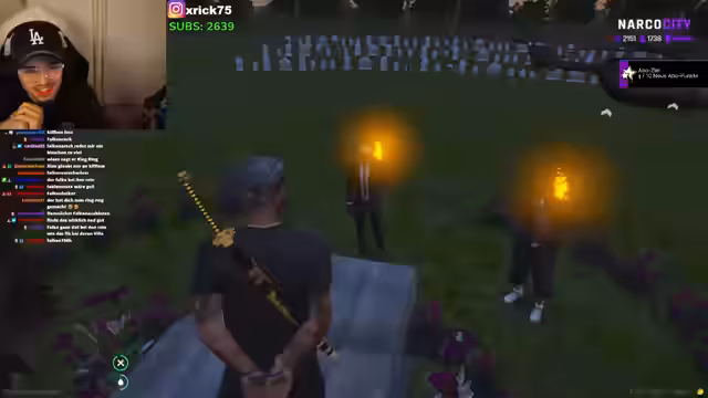 00:27:35Die Stimmung schlägt um. Der Streamer wird von einer Person namens Falkenfickerer angesprochen, die ihn bedroht und mitnimmt. Es folgt ein mysteriöses Ritual, bei dem der Streamer drei Optionen vorgelegt werden: sich dem 'Glauben des Falken' anschließen, ein Opfer darbringen oder als Be sterben. Der Streamer wählt, ein Opfer zu beschaffen und muss schwören, innerhalb von sieben Tagen 'Prinz Schiolinski von Vespucera' zu liefern.