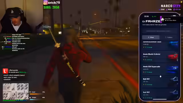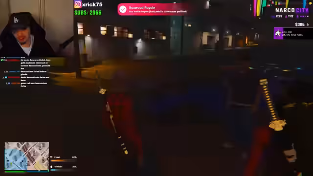 00:34:58Nach dem emotionalen Höhepunkt wechselt der Streamer das Thema und befasst sich mit logistischen Absprachen. Er spricht mit einem Nutzer namens Gustin über Westenlieferungen für einen bevorstehenden Krieg, der an den folgenden Abenden ab 21 Uhr stattfinden wird. Es geht darum, die Westenherstellung auszunutzen, solange dies möglich ist. Anschließend gibt es einen kleineren Streit über einen vergangenen Raubüberfall, bei dem der Streamer 400.000 'Schwarzgeld' verloren hat.