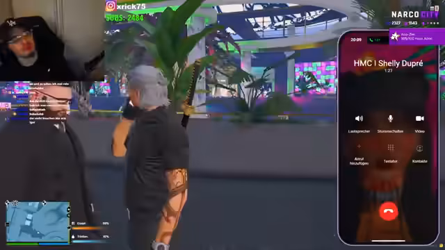 02:11:54Die Konfrontation eskaliert weiter, als es um ein zurückgebliebenes Klappmesser geht. Der Gegner, der als 'Gchau' oder 'Schau' bezeichnet wird, fordert das Messer zurück, was der Streamer ablehnt, da es im Zuge einer respektlosen Handlung erhalten wurde. Die Kommunikation wird zunehmend aggressiver und es werden Todesdrohungen ausgetauscht. Schließlich gibt der Streamer bekannt, dass er den Gegner angeschossen hat, um eine Eskalation zu verhindern, die dieser aber provoziert habe. Der Konflikt hat nun eine bewaffnete Dimension erreicht.