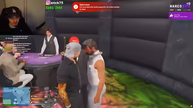 00:22:49Der Streamer verlagert den Fokus auf das Glücksspiel im Casino, wo er hohe Einsätze bei Blackjack tätigt. Er verliert dabei erhebliche Beträge, wie zum Beispiel 113.000 Chips, und zeigt sich frustriert über das Pech. Der Chat wird in die Situation einbezogen, durch Kommentare und Ermutigungen begleitet. Diese Spielsitzungen nehmen einen erheblichen Teil der Streamzeit in Anspruch und sind emotional aufgeladen.