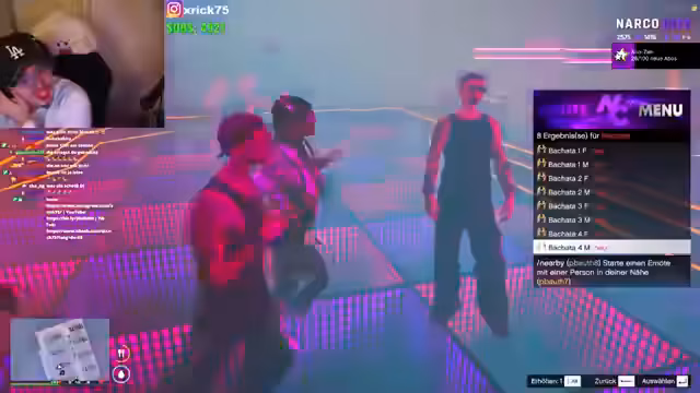 01:47:12Der Stream fokussiert sich auf die Vorbereitungen für eine Party im Club 77. Parallel wird intensiv über den akuten Frauenmangel auf dem Server diskutiert. Charaktere wie Valdez und Diamond werden thematisiert, wobei die Dynamik zwischen bestehenden und ehemaligen Beziehungen der Spielfiguren kritisch hinterfragt wird. Die Unterhaltung zeigt Frustration über fehlende weibliche Präsenz und die kurze Dauer von Romanzen im Rollenspiel.