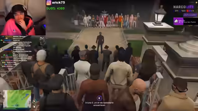 02:49:34Um die Konfrontation mit Santana und Azul zu bestehen, schließt der Streamer eine Allianz mit der Maghreb-Fraktion. Es wird ein 6-gegen-6-Duell vereinbart. Während der Vorbereitungen stellt er jedoch erschreckend fest, dass die Maghreb-Krieger keine speziellen Waffen wie Spezialkarabiner besitzen. Um den taktischen Nachteil auszugleichen, verteilt er an seine Teammitglieder Drogen wie Marjun und Fentanyl, um für den bevorstehenden Kampf einen Vorteil zu verschaffen.