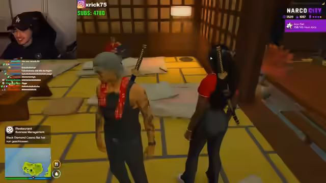 05:03:24Nach dem aufwändigen Event verlagert sich der Stream auf eine entspanntere Aktivität: den Besuch eines Casinos. Er berichtet, dass er bei seiner Ankunft eine Gang bei einem Drogendeal beobachtet und prüfen will, ob es sich um eine Falle handelt. Anschließend betritt er das Casino, um das Glücksspiel zu genießen und den Abend ausklingen zu lassen. Der Fokus liegt hier auf der Unterhaltung und dem entspannten Ausklang des Streams.